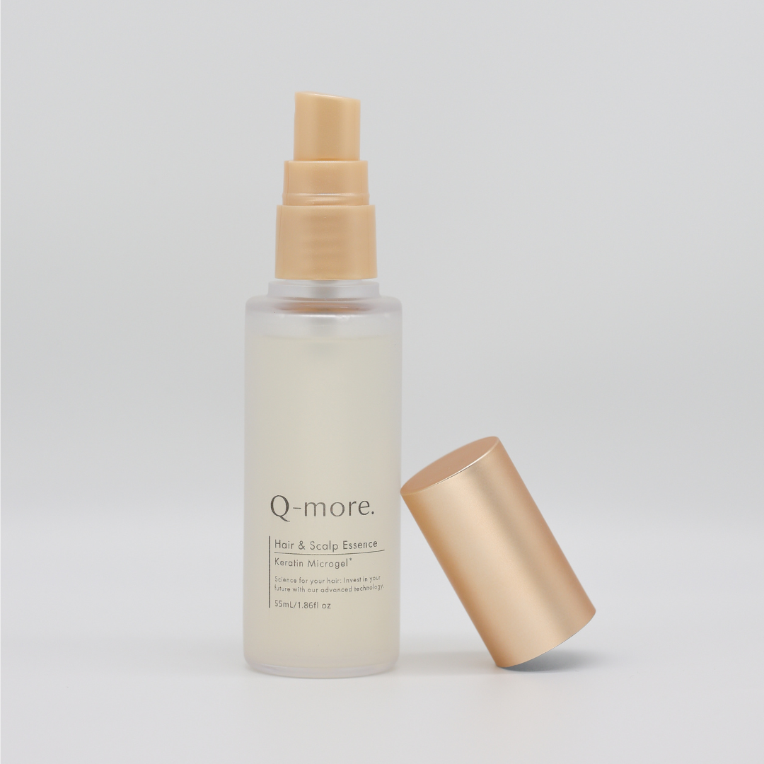 Q-more.は、独自開発の高濃度ケラチンマイクロ球体ゲル「KeraQ®」を配合した、毎日使える新しいヘアケア化粧品です。